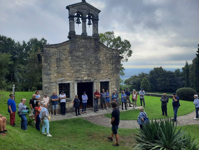 L’escursione storica degli amici francesi alla scoperta degli importanti siti storici del Monte di Ragogna, accompagnati dalla guida dell’associazione “Gruppo Grande Guerra del Friuli Collinare” di Ragogna Marco Pascoli.