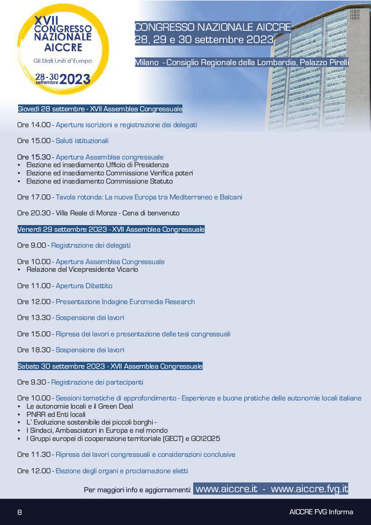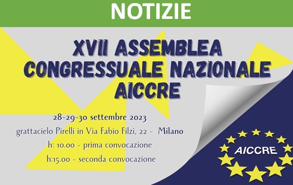 IL PROGRAMMA DELLA XVII ASSEMBLEA CONGRESSUALE AICCRE- MILANO 28, 29 e 30 SETTEMBRE 2023